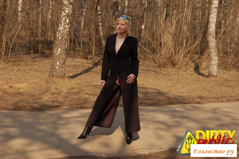 Было какое-то мероприятие в центре города, на котором телка напилась изрядно и бродила показывала всем сиськи. Вот уже развратница! Из-под плаща на окружающих выглядывали небольшие белые титьки, которые дама всем демонстративно светила. Ну что поделать, шлюхи есть шлюхи - тут ничего не попишешь! Подгулявшая голая праста тем временем отошла от строений и совсем обнажила плечи, титьки, повернулась ягодицами... а трусиков-то нет! Аплодисментов и зрительских симпатий насобирала на свои дойки целое море.